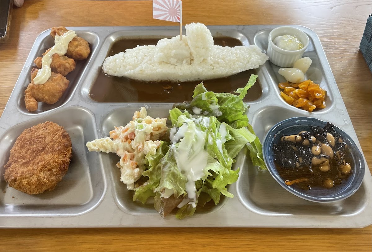 When it comes to cuisine, Bosai Cafe YUI offers a delightful array of dishes, but the highlight is undoubtedly their collaboration lunch featuring the Maritime Self-Defense Force Curry and Air Self-Defense Force Fried Chicken. Customers rave about the "soft and flavorful" brown curry, which is served generously and pairs wonderfully with the succulent fried chicken. Each meal is a heartfelt tribute to Japan’s self-defense forces, and at a reasonable price of around 1200 yen, it provides not just great taste but also a sense of pride in supporting local heroes.